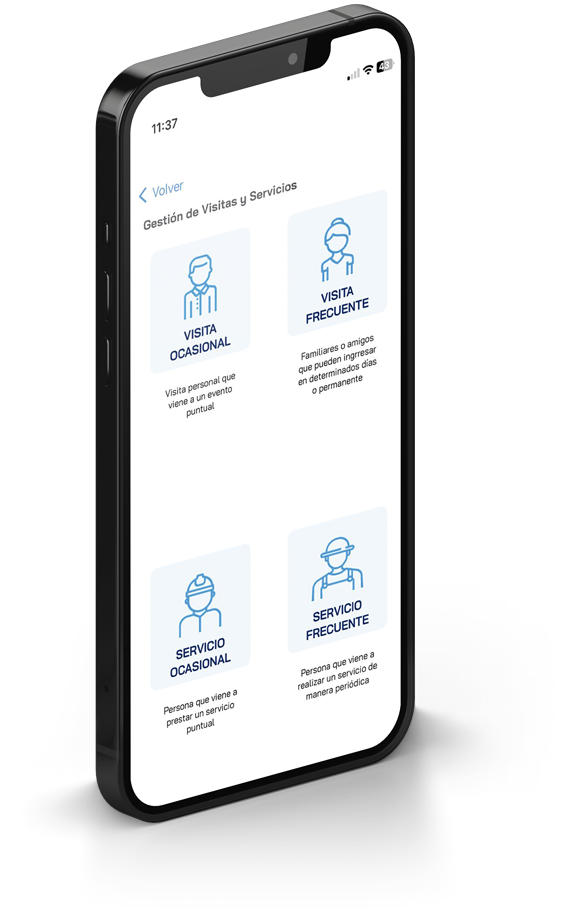 Gestión de Visitas Programa tus visitas o servicios para el ingreso expedito a tu comunidad. Permite Cédula de Idendidad o código QR.